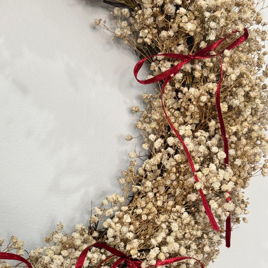 Celebrate timeless love with our Eternal Love Wreath. Crafted from delicate dried baby’s breath and adorned with elegant red ribbon bows, this stunning wreath is a lasting symbol of affection. Perfect for Valentine’s Day or as a year-round token of devotion.